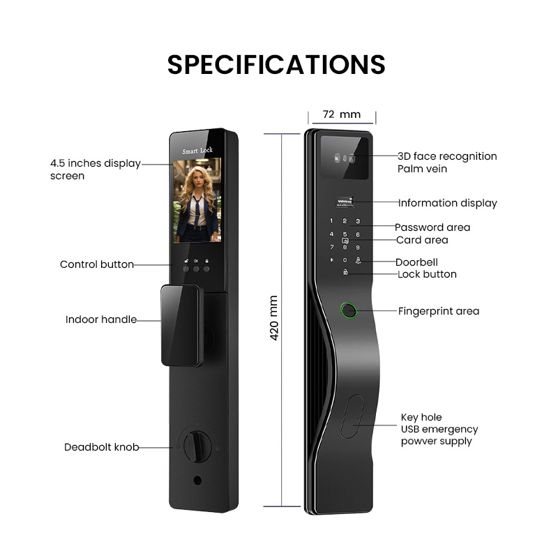 გახსნის მეთოდები Face ID/Palm ID/Fingerprint / PIN / Card / APP / Key